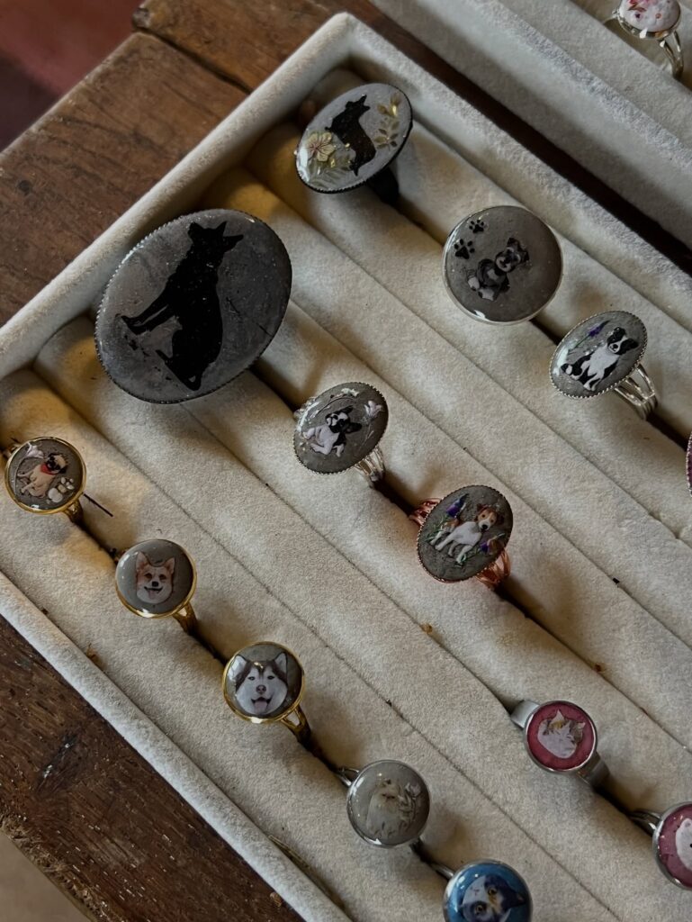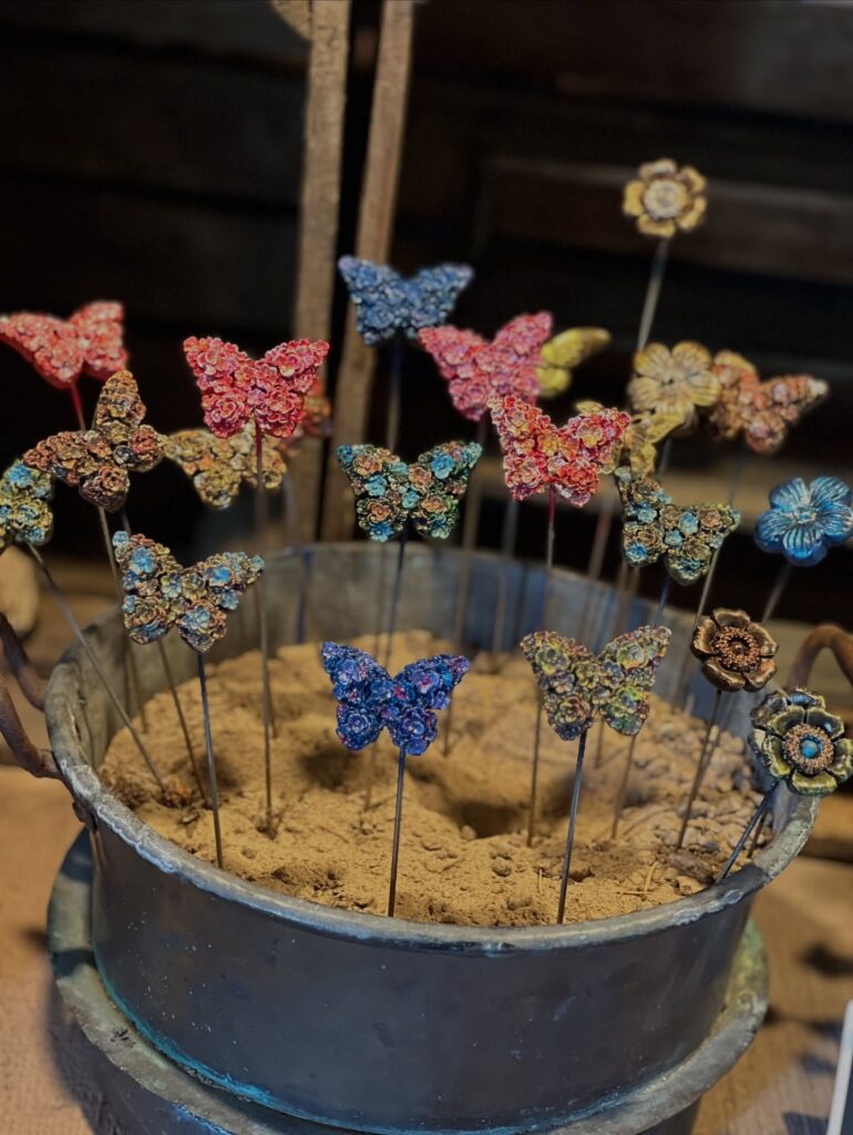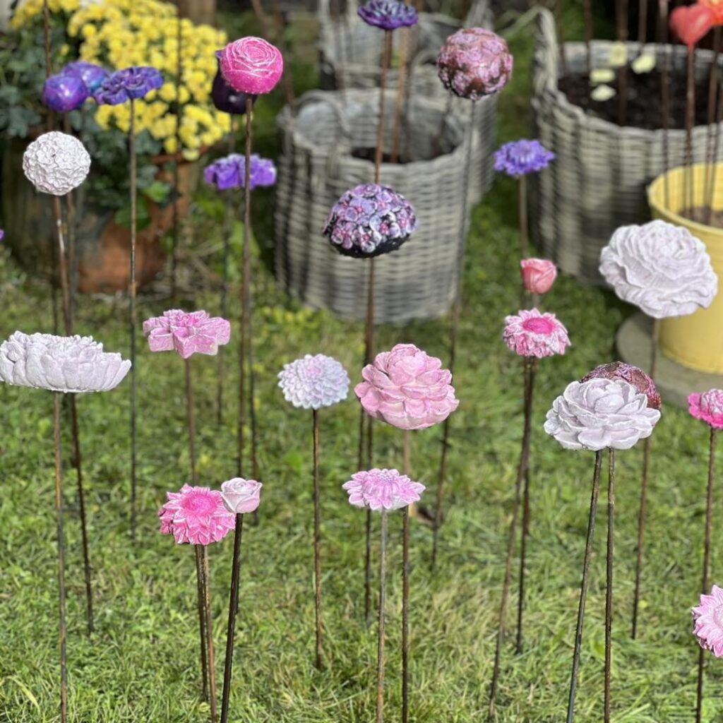 Jag tar med mig lite av varje, både trädgårdsdekorationer, julpynt och smycken. Eftersom det är skördefest har jag även gjort ett mindre gäng pumpor i både mina vanliga rostiga/gröna färger men även lysande röd/orange